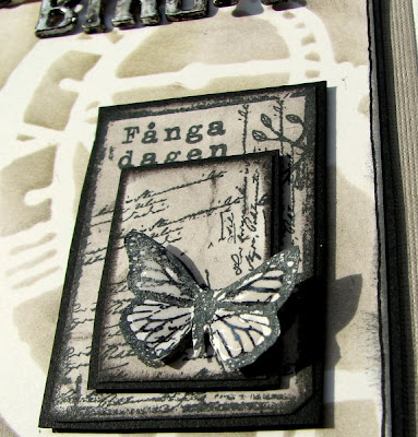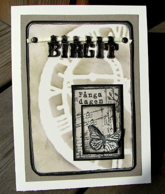 Idag är jag riktigt egocentrerad...:) Fick ett underbart paket från Marita som har AltheasMix (med erbjudande på bloggen varje dag! )Bl.a. fick jag mitt namn i metallfärgade hängen som jag ville använda, har hängt dem på en läderrem. Gjorde bakgrunden med Tim Holtz´Mask och den underbara lilla "Fånga Dagen" stämpeln som jag gjort i tre nivåer. Allt material finns hos Altheas och det levereras väldigt snabbt!