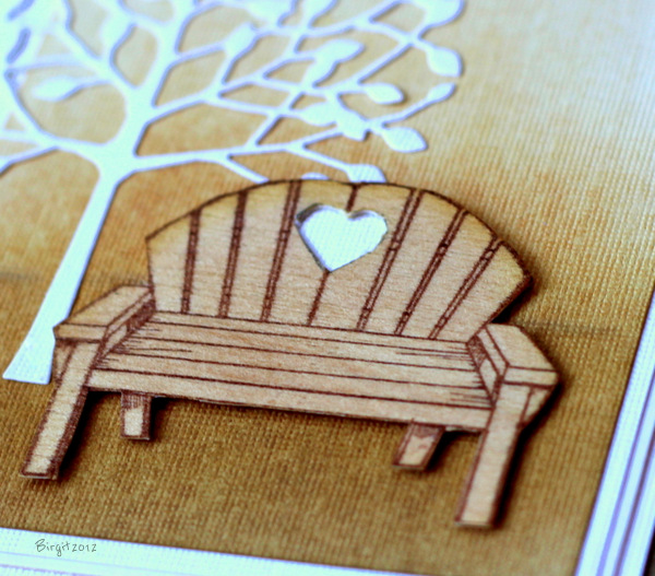 Visst är "After Work" ett roligare namn än pension..:) Har gjort ett kort till en utmaning på SCS där man skulle använda trä i någon form! Jag använde ett papper med träyta för denna söta bänk från Alota Rubberstamps, Mini Wooden Bench.