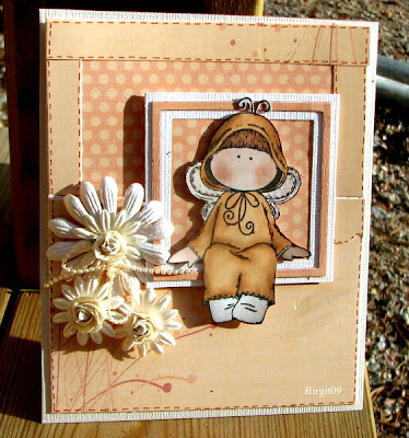 Det ser ut att bli en varm helg på flera sätt...temperaturer på 25 grader och massor med betygssättning :) Kanske kan jag kombinera dessa "heta" sysslor genom att sitta ute och och göra mina bedömningar..! Har gjort ett kort till en utmaning med "gångjärn" i form en brad som sitter dold under den stora blomman. Hälsningen finns under fliken!